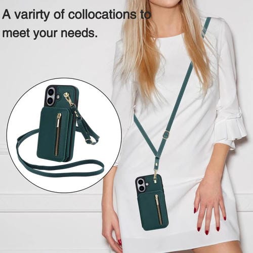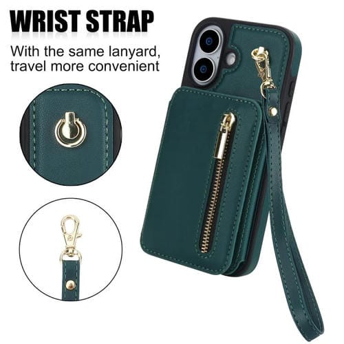 Funda para iPhone 17 YM006 con cremallera y doble cordón (verde)