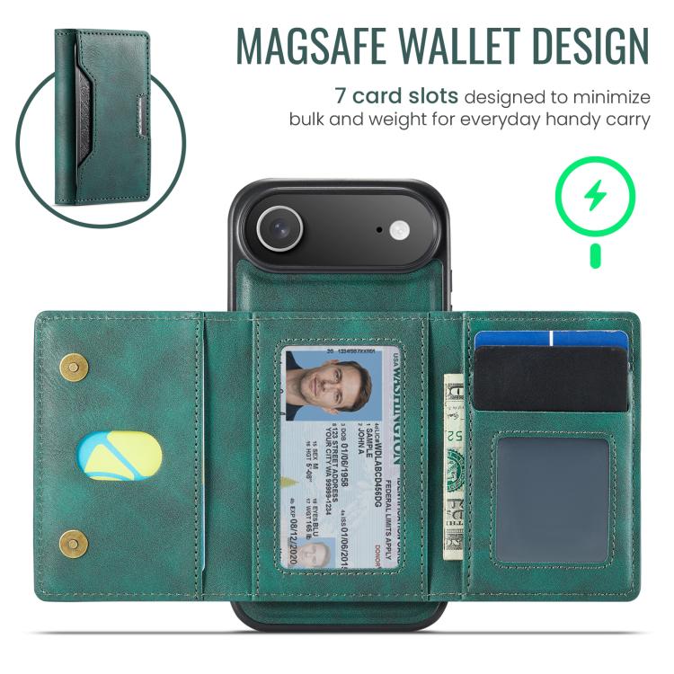 Funda para iPhone Air MAGKING K4 Series MagSafe RFID plegable en tres partes con tarjetero y funda desmontable (verde)