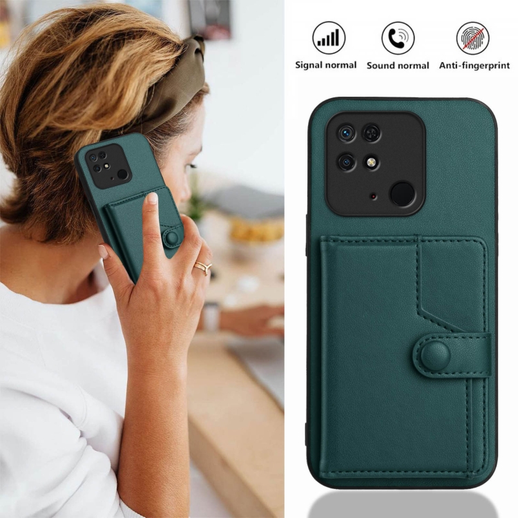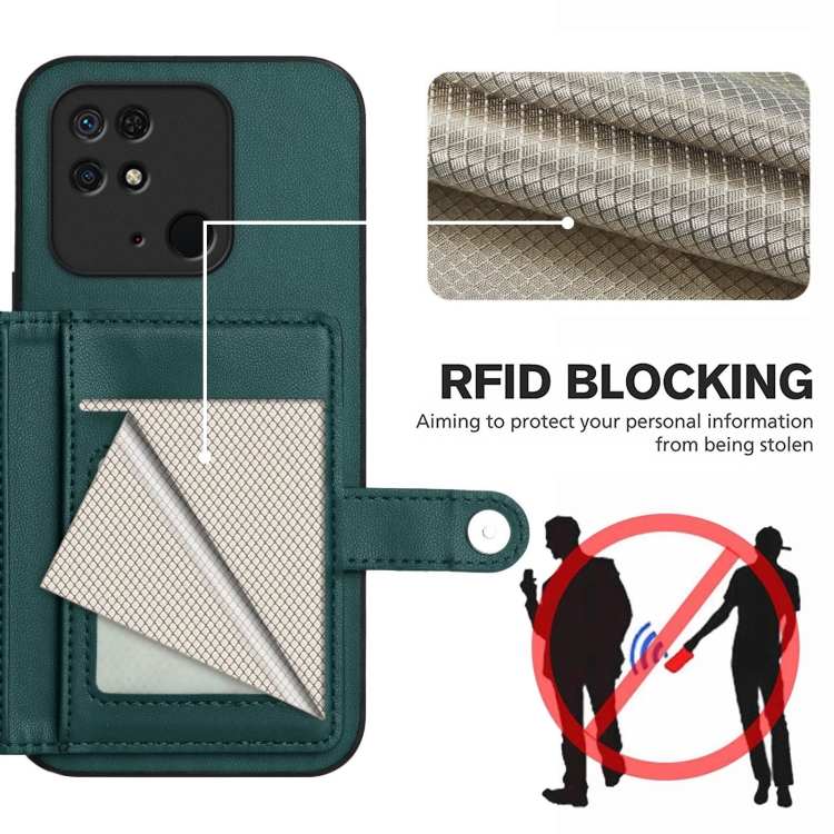 Funda para Teléfono Antirrobo con Botón y Tarjeta Rfid para Redmi 10C (Verde)