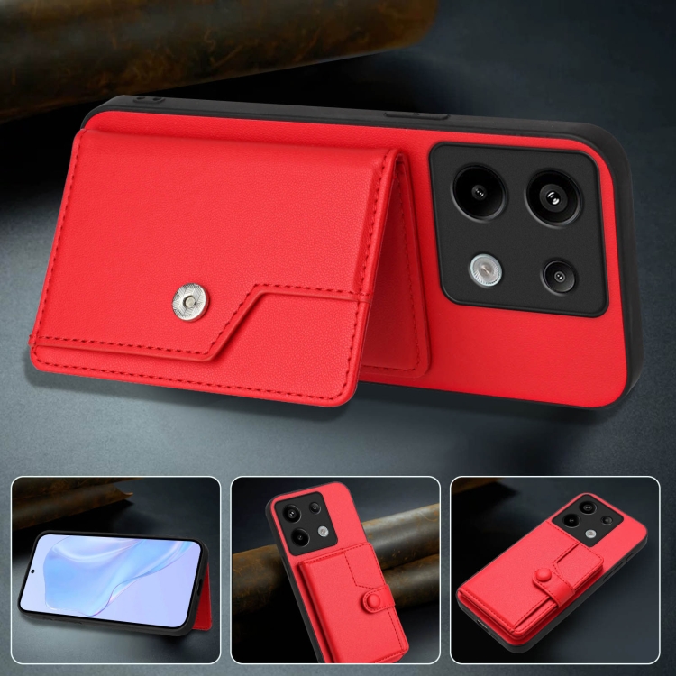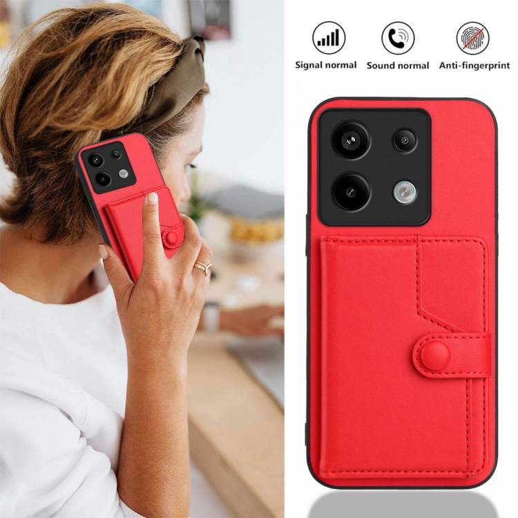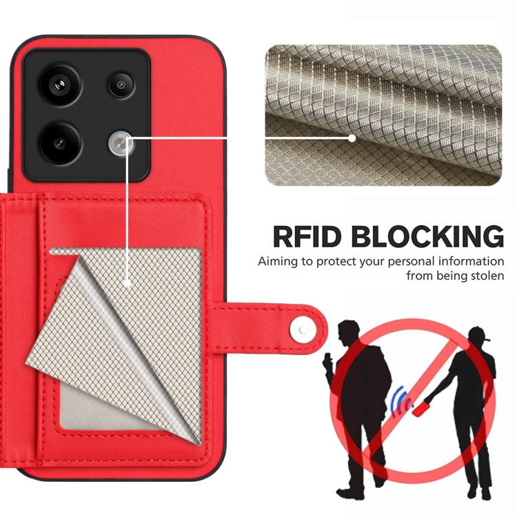 Funda para Teléfono Antirrobo con Botón y Tarjeta Rfid para Redmi Note 13 Pro 5G (Roja)