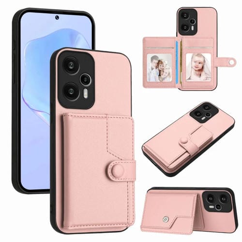 Funda para Teléfono Antirrobo con Botón y Tarjeta Rfid para Xiaomi Poco F5 5G (Rosa)