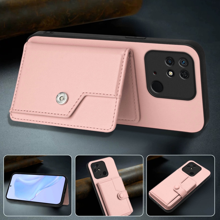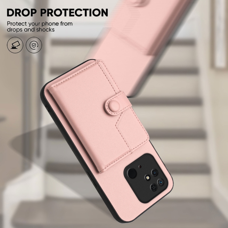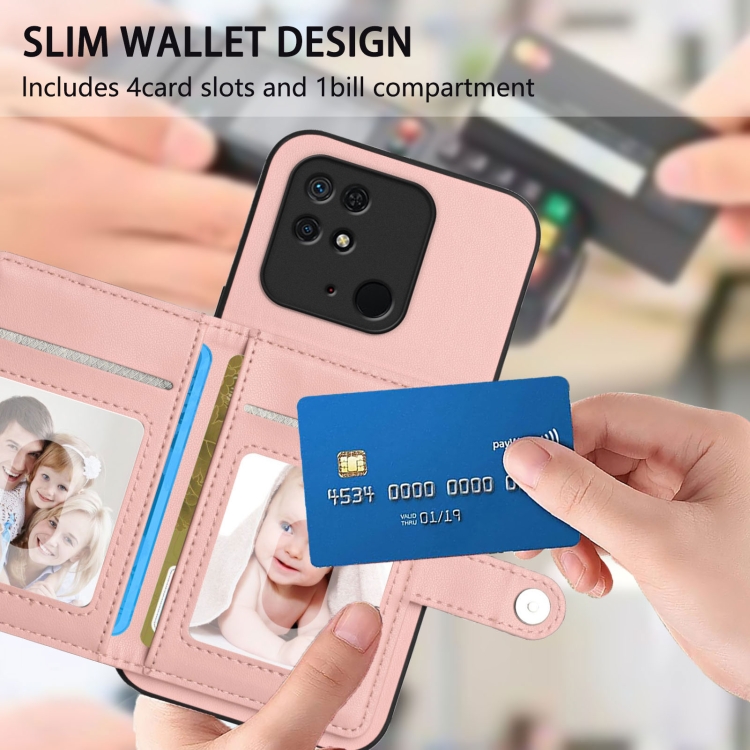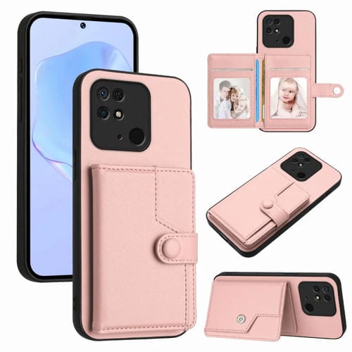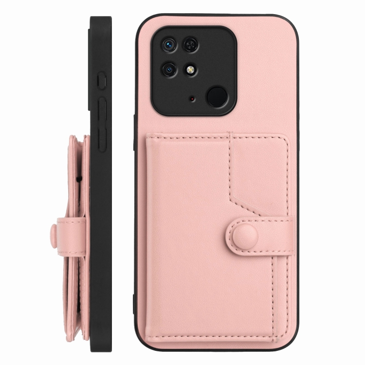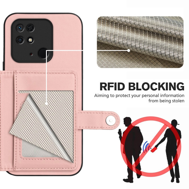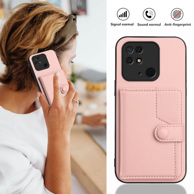 Funda para Teléfono Antirrobo con Botón y TaRJetero Rfid para Redmi 10C (Rosa)