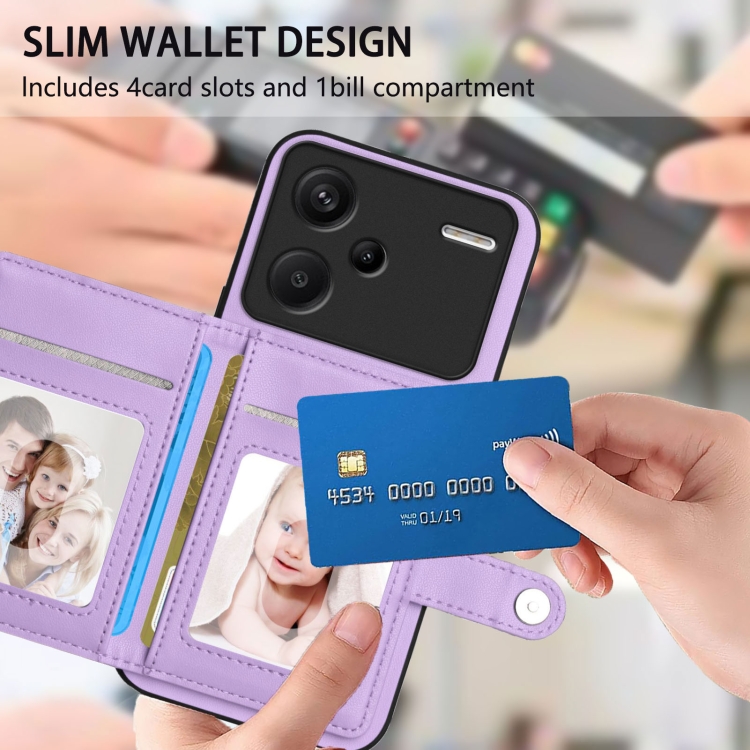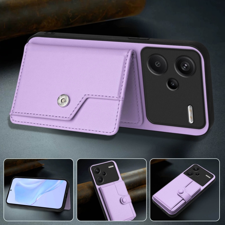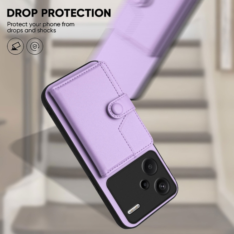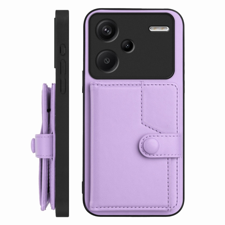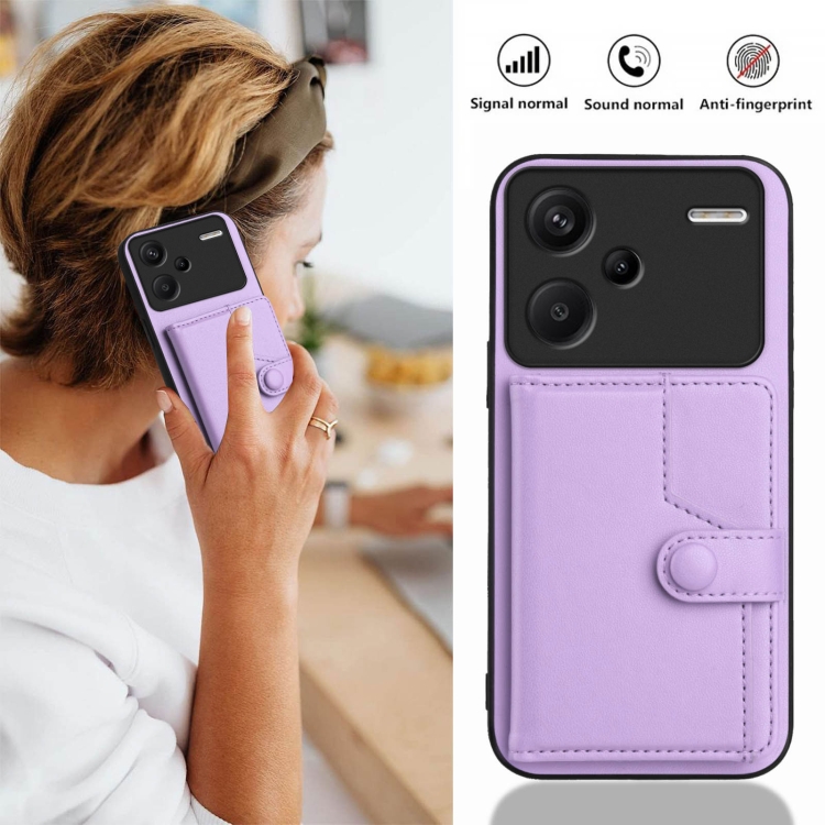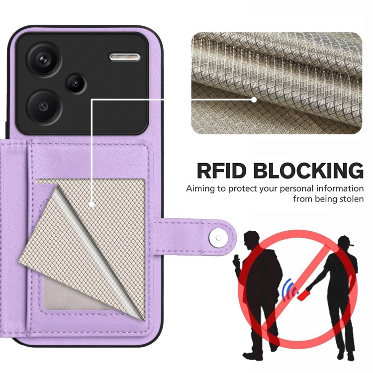 Funda para Teléfono Antirrobo con Botón y TaRJetero Rfid para Redmi Note 13 Pro+ (Morado)