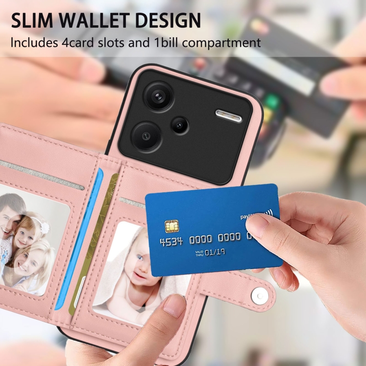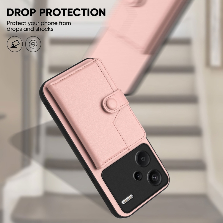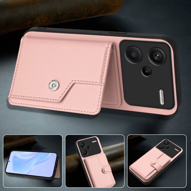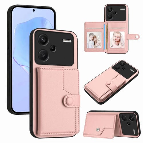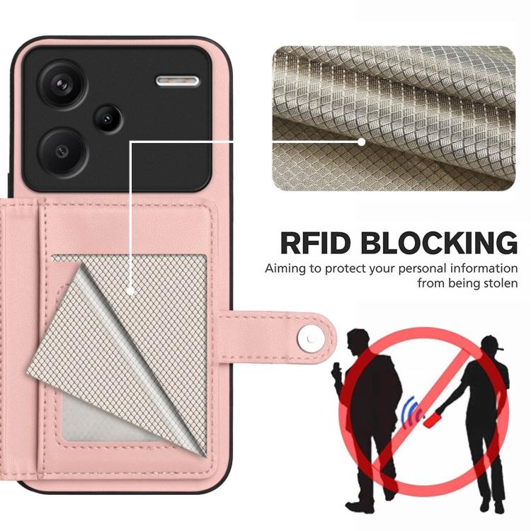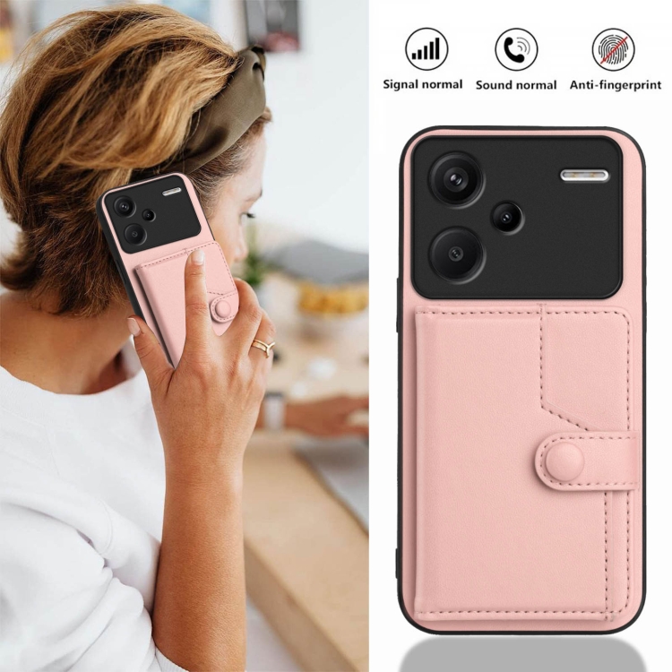 Funda para Teléfono Antirrobo con Botón y TaRJetero Rfid para Redmi Note 13 Pro+ (Rosa)
