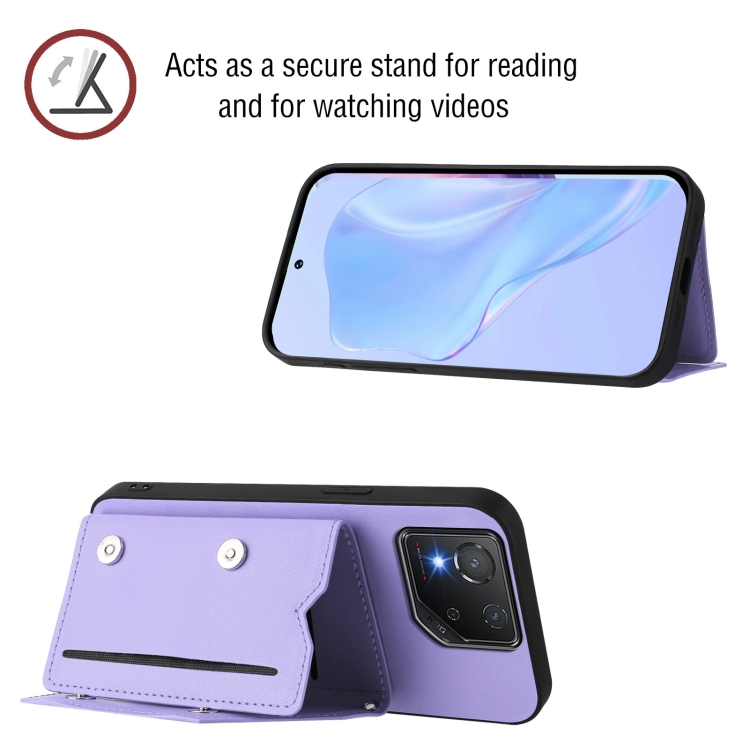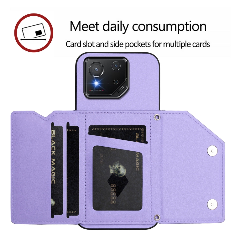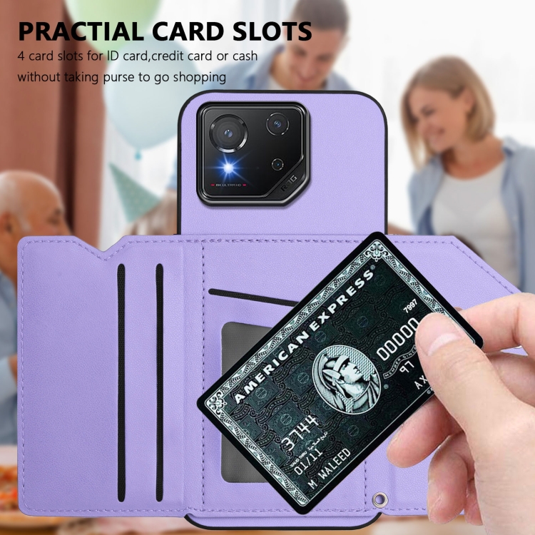 Funda para Teléfono Asus Rog Phone 8 Pro con 4 Ranuras para Tarjetas y Correa (Morado)