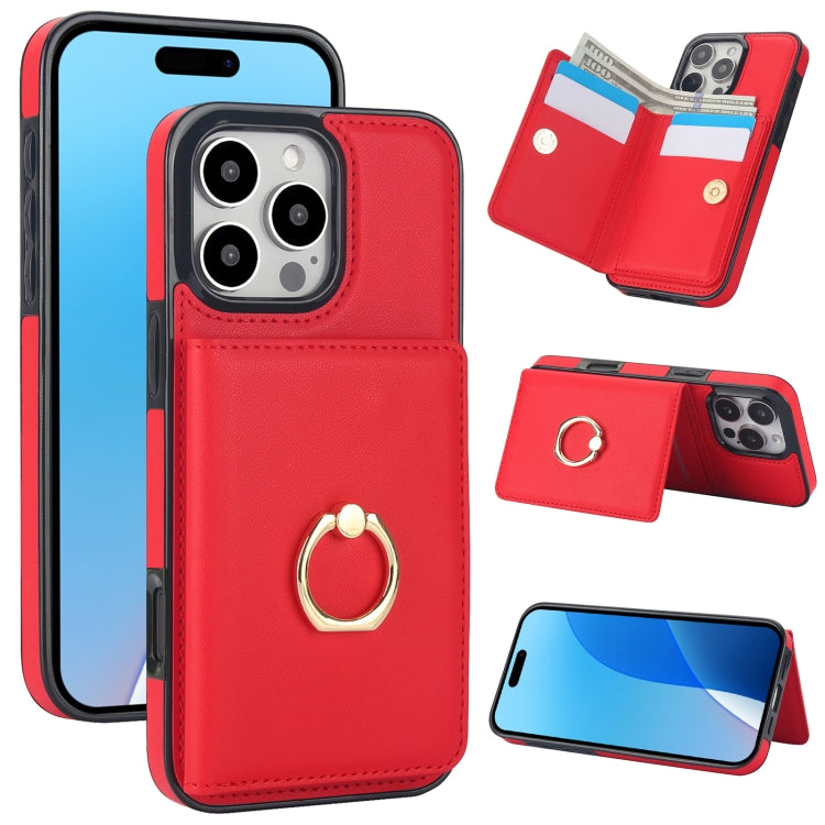 Funda para Teléfono con Anillo y Tarjeta Antirrobo Rfid para iPhone 16 Pro Max (Rojo)
