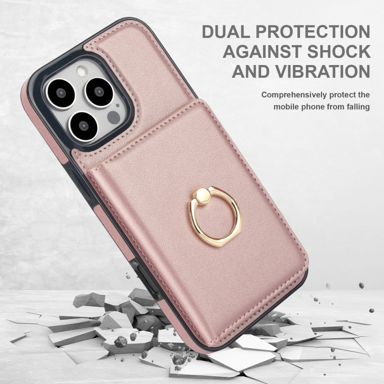 Funda para Teléfono con Anillo y Tarjeta Antirrobo Rfid para iPhone 16 Pro (Oro Rosa)