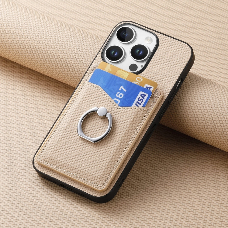 Funda para Teléfono iPhone 16 Pro Tipo Billetera con Anillo y Tarjetero Fibra de Carbono (Caqui)
