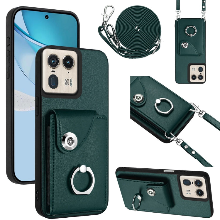 Funda para Teléfono Motorola Edge 50 Ultra UE con Aro, Tarjetero y Cordón Largo (Verde)