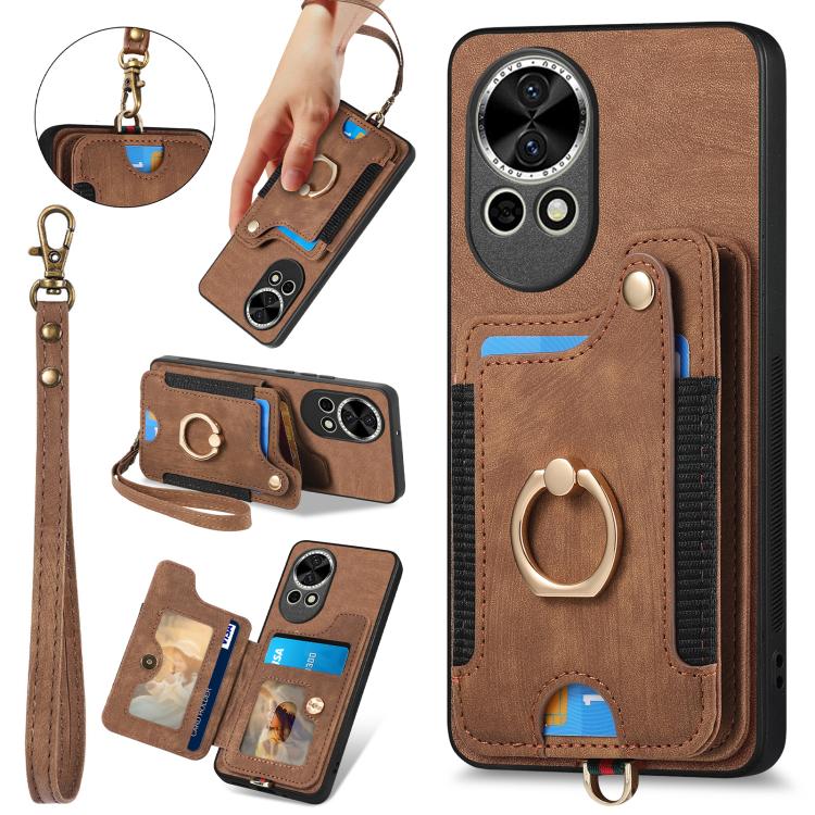 Funda para Teléfono Huawei Nova 12 Pro con Billetera MultiTarjeta, Diseño Retro, Sensación de Piel y Anillo (Marrón)