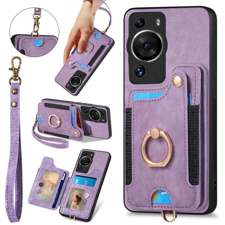 Funda para Teléfono Huawei P60 con Billetera MultiTarjeta y Anillo de Piel Sintética (Morado)