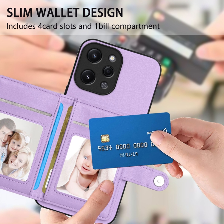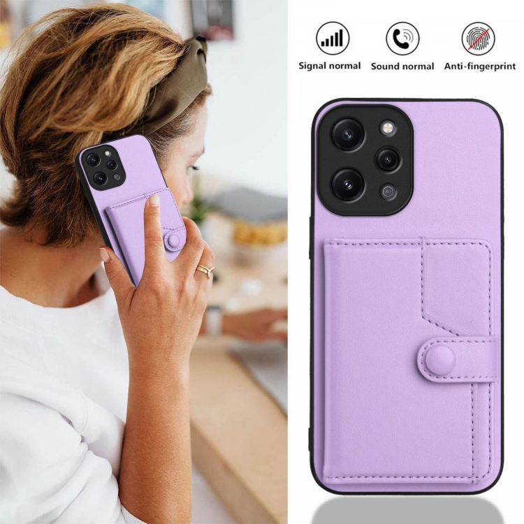 Funda para Teléfono con Botón y Tarjeta Rfid Antirrobo para Redmi 12 4G Global (Morado)