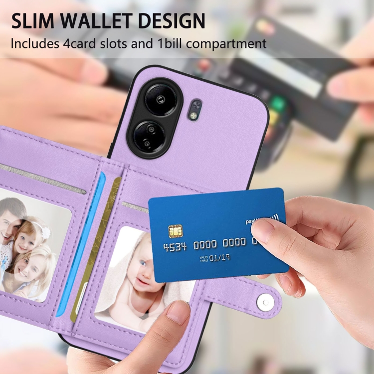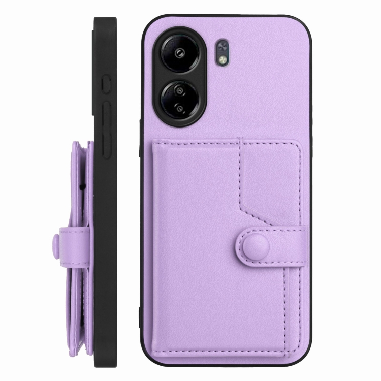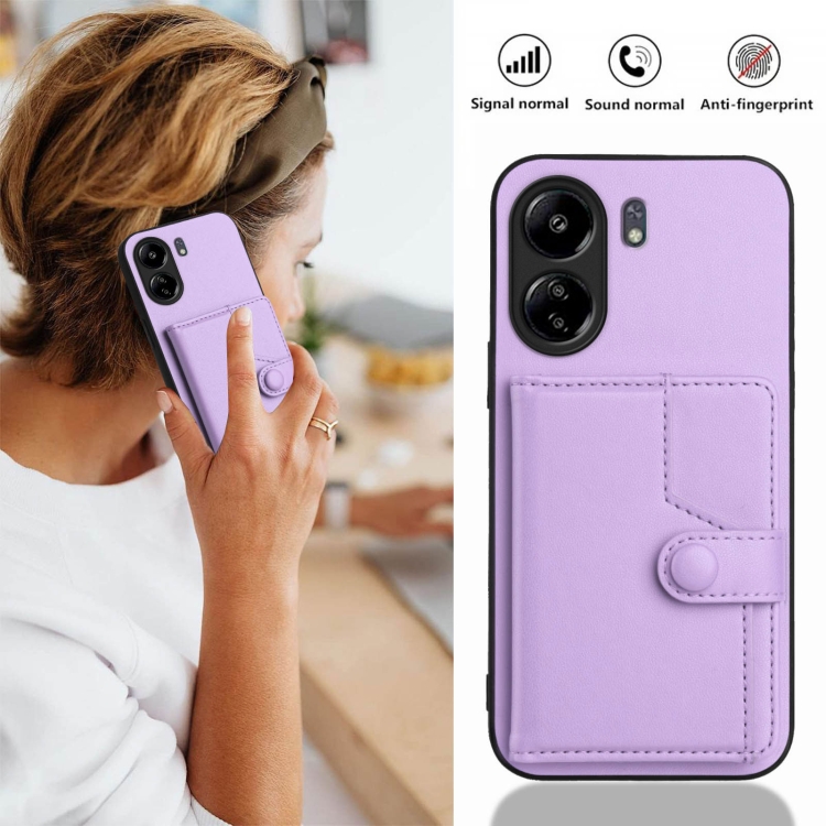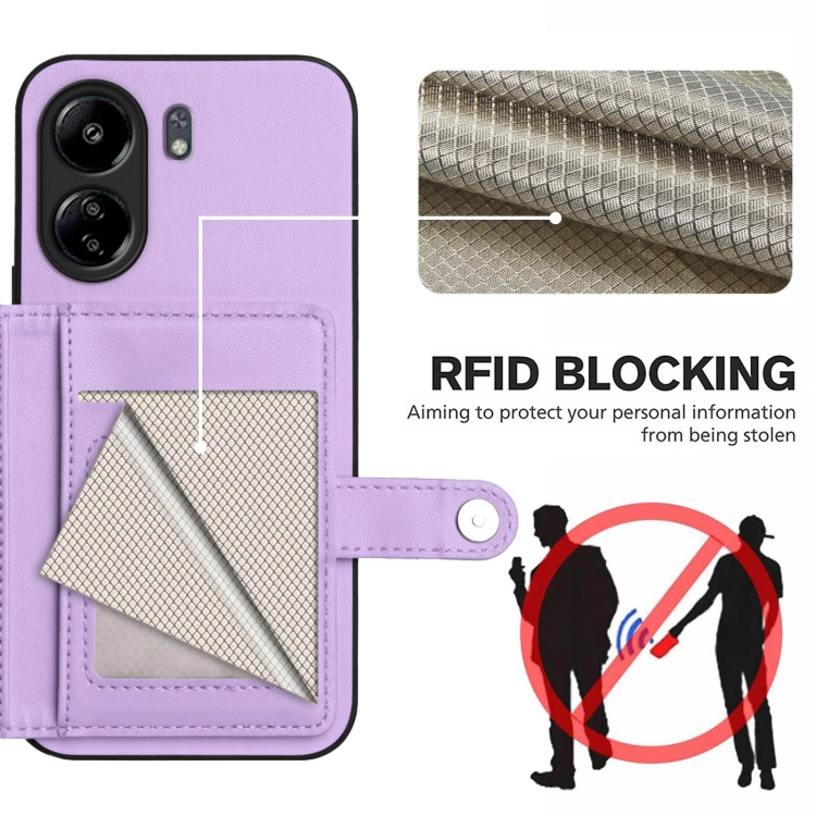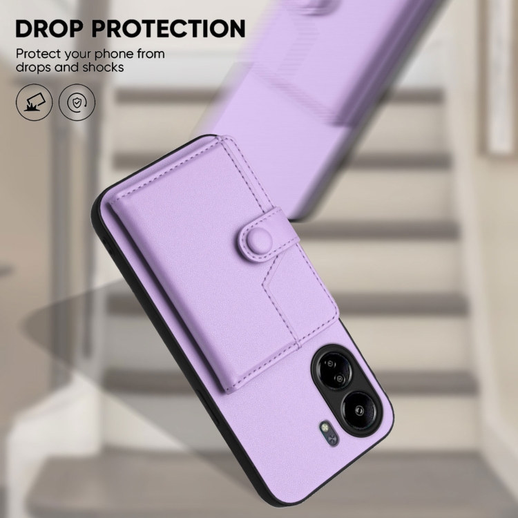 Funda para Teléfono con Botón y Tarjeta Rfid Antirrobo para Redmi 13C 4G Global (Morado)