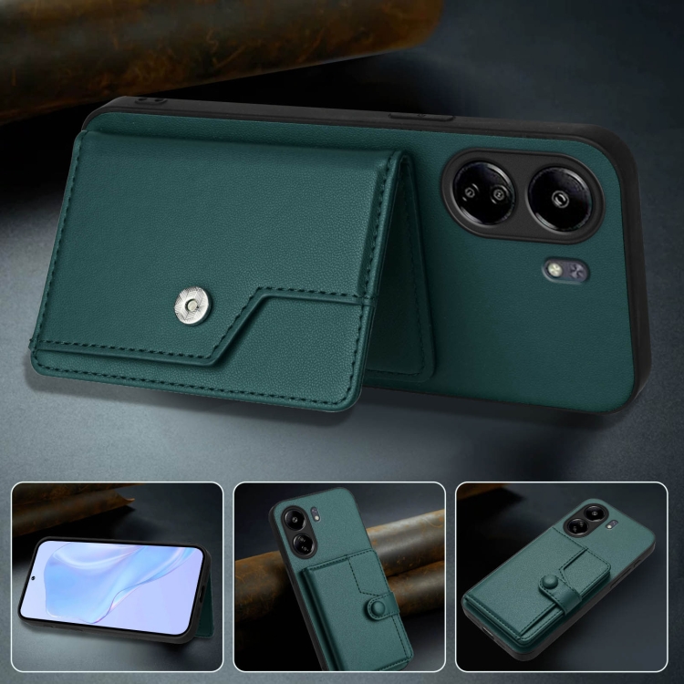 Funda para Teléfono con Botón y Tarjeta Rfid Antirrobo para Redmi 13C 4G Global (Verde)