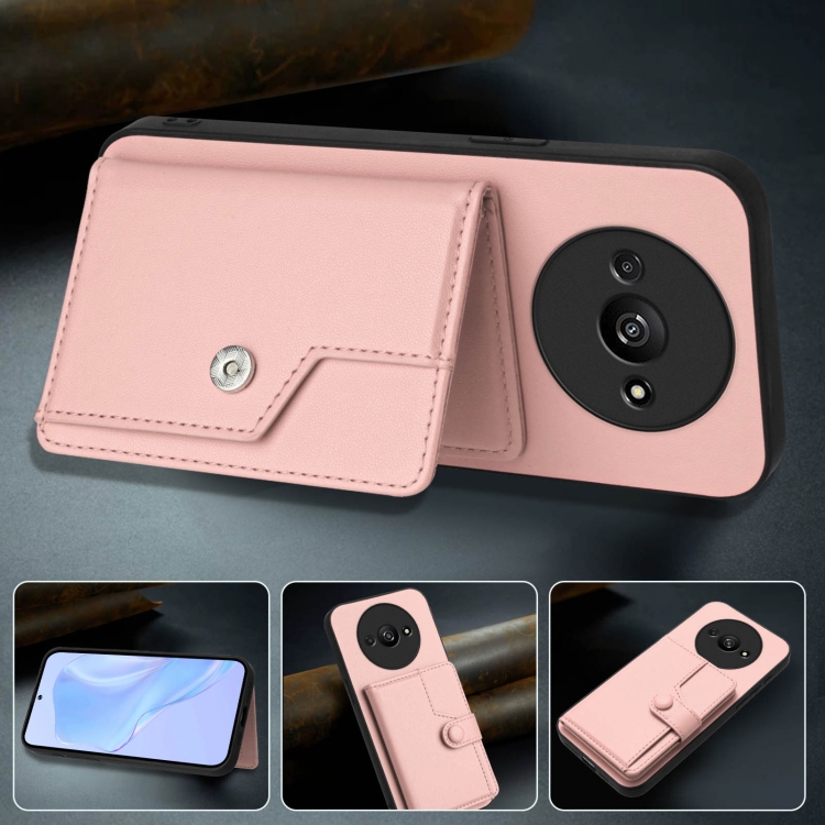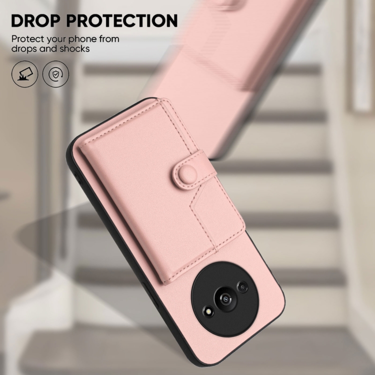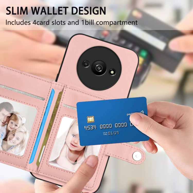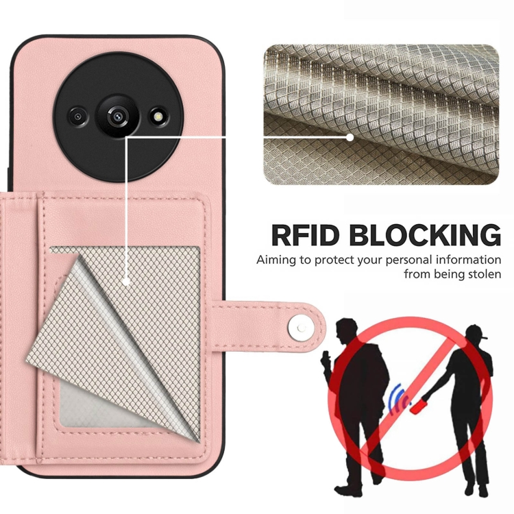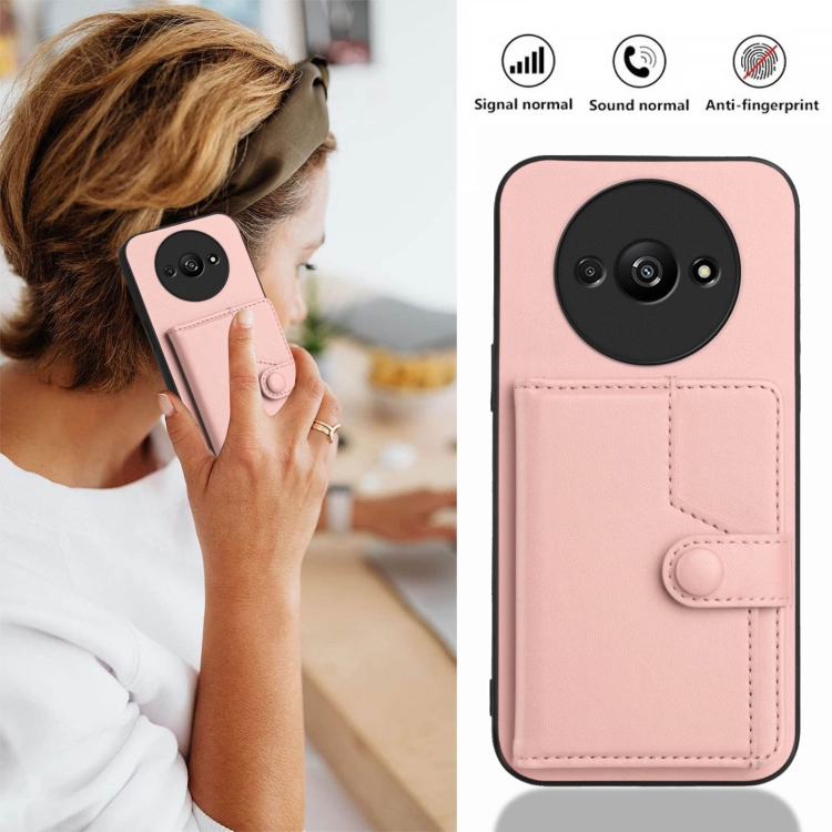 Funda para Teléfono con Botón y TaRJetero Antirrobo Rfid para Redmi A3 4G Global (Rosa)