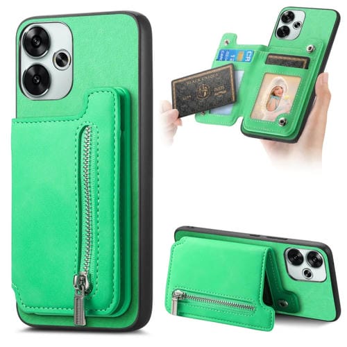 Funda para Teléfono con Cremallera Magsafe Retro para Redmi Turbo 3 5G (Verde)