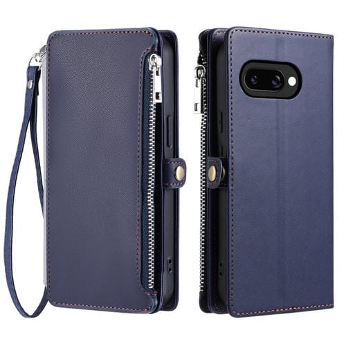 Funda de Cuero para Google Pixel 9A con Cremallera y Ranura para Tarjetas (Azul)