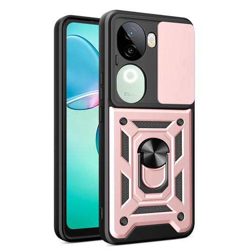 Funda para Teléfono con Diseño de Cámara Deslizante Global para Vivo Iqoo Z9S 5G, TPU + PC (Oro Rosa)