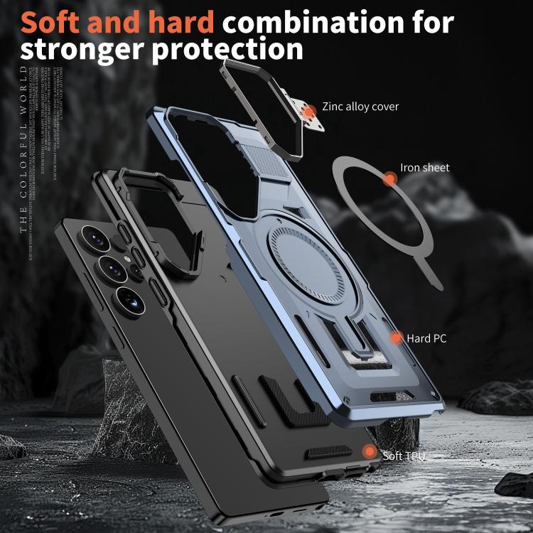 Funda para Teléfono Samsung Galaxy A25 5G con Marco Hueco y Soporte Magsafe (Azul Marino)