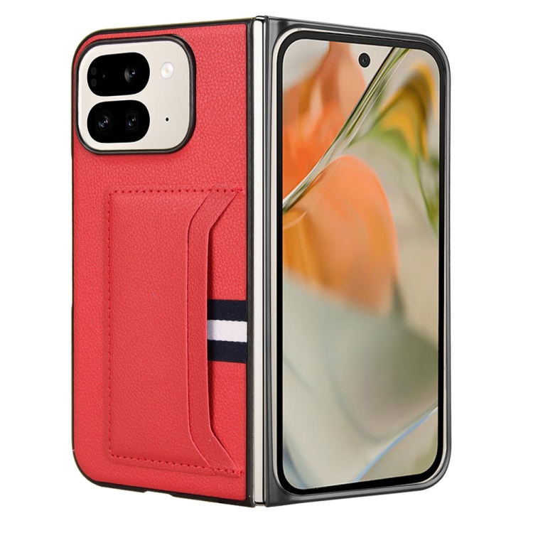 Funda para Google Pixel 9 Pro Fold con Ranuras para Tarjetas y Textura Litchi (Roja)
