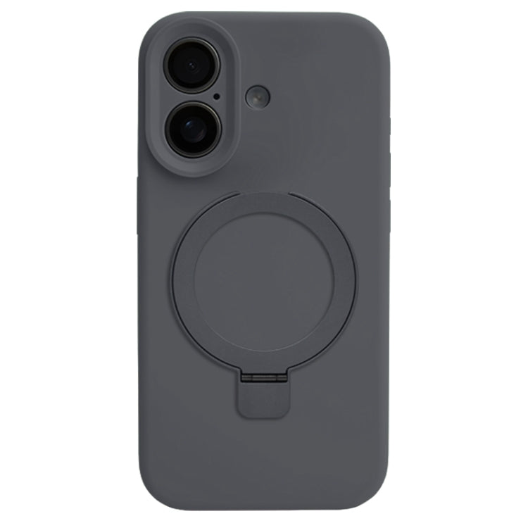 Funda para Teléfono Magsafe con Soporte de Anillo de Metal Silicona Líquida para iPhone 16 (Grafito)