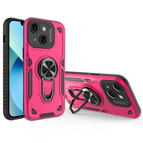 Funda para Teléfono iPhone 13 TPU + PC Soporte Giratorio Metal Magnético (Rosa Rojo)