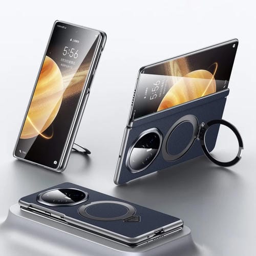 Funda para Teléfono Sulada Honor Magic V3 con Soporte Magnético Magsafe de Cuero (Azul)
