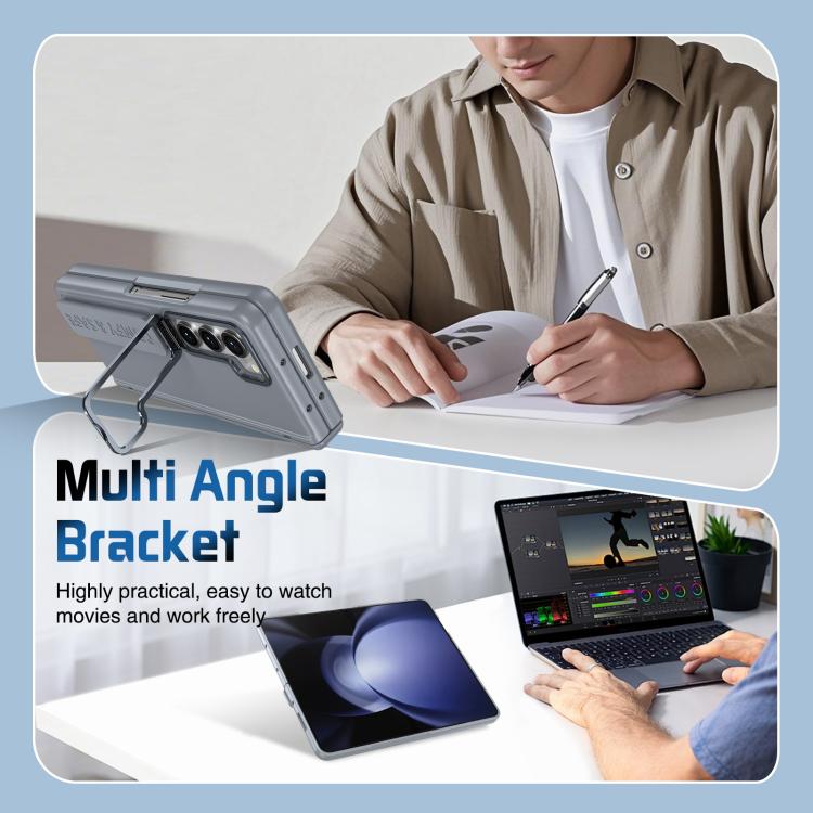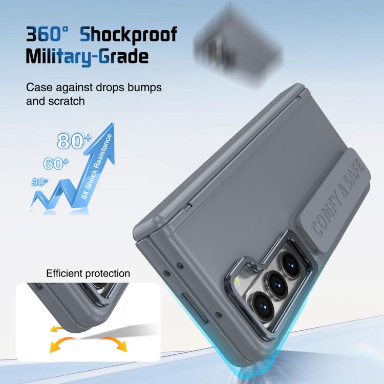 Funda para teléfono con soporte para lente integrada y correa para Samsung Galaxy Z Fold5 (gris)