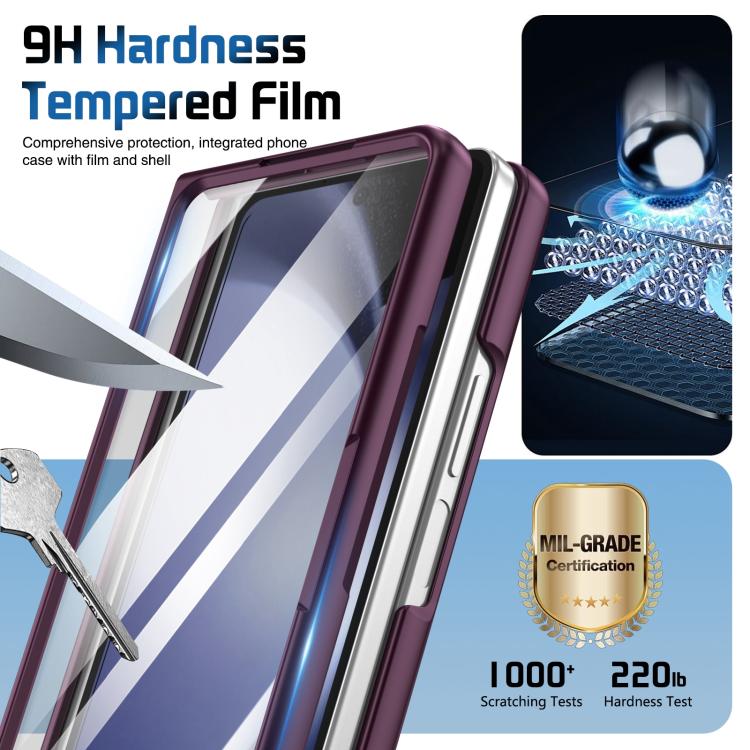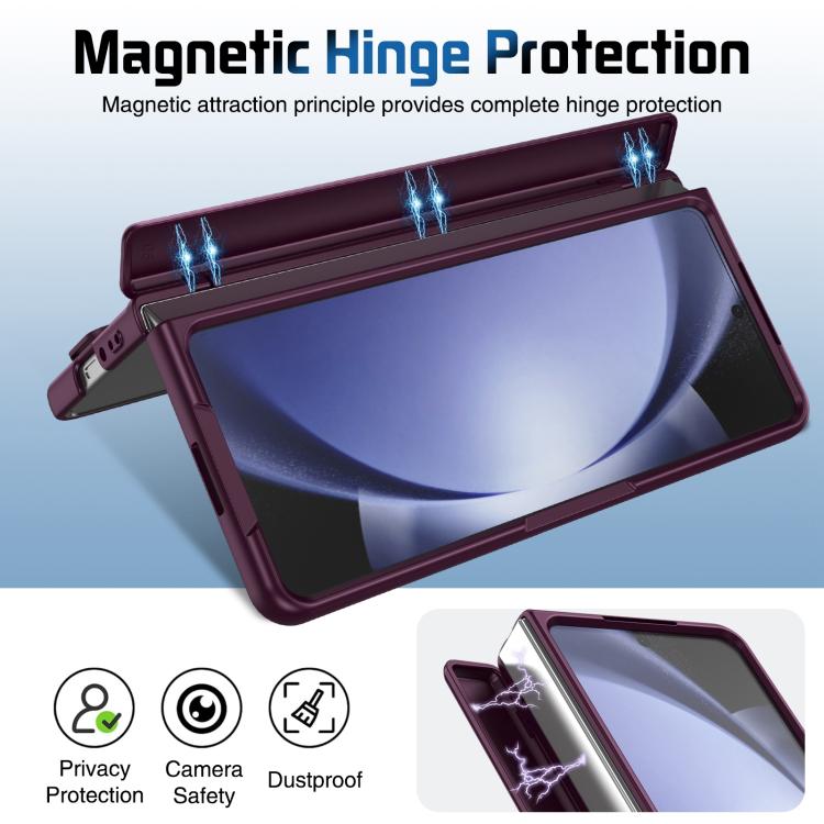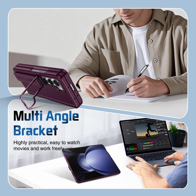 Funda para teléfono con soporte para lente integrada y correa para Samsung Galaxy Z Fold5 (rojo vino)