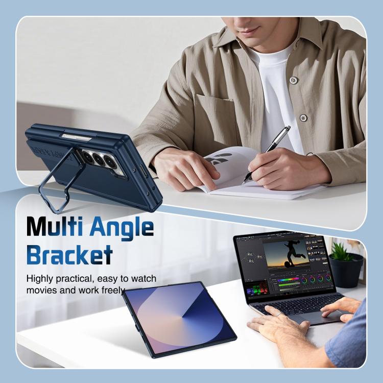 Funda para teléfono con soporte para lente integrada y correa para Samsung Galaxy Z Fold6 (azul oscuro)