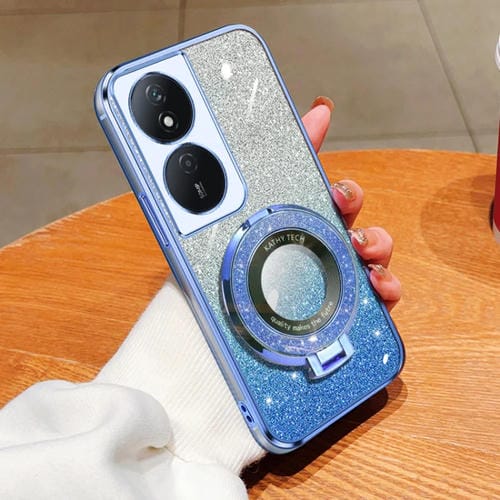 Funda para Teléfono Honor Play 50 Plus TPU con Soporte Redondo y Purpurina Degradada (Azul Sierra)