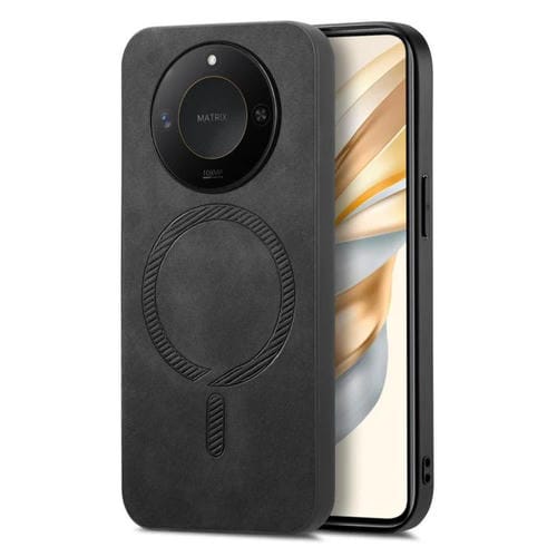 Funda Trasera Magnética de PU para Honor X60 5G con Magsafe Estilo Retro (Negro)