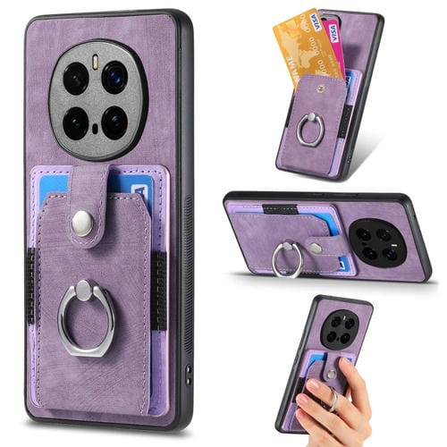 Funda para Teléfono Honor Magic 7 Pro con Tarjetero y Anillo Tacto de Piel (Morado)