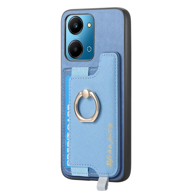 Funda para Teléfono Honor 100 Pro con Tarjetero y Anillo de Cuero Magsafe Cross (Azul)