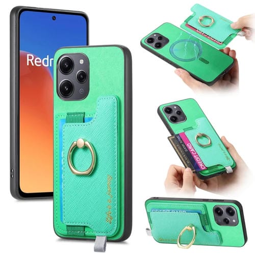 Funda para Teléfono con TaRJetero y Anillo de Cuero con Diseño Retro Magsafe para Redmi 12/Note 12R/Poco M6 Pro 5G (Verde)