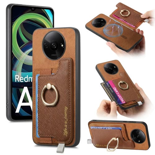 Funda para Teléfono con TaRJetero y Anillo de Cuero con Diseño Retro Magsafe para Xiaomi Redmi A3 (Marrón)