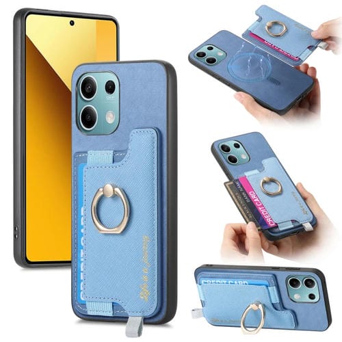 Funda para Teléfono con TaRJetero y Anillo de Cuero con Diseño Retro Magsafe para Xiaomi Redmi Note 13 5G (Azul)