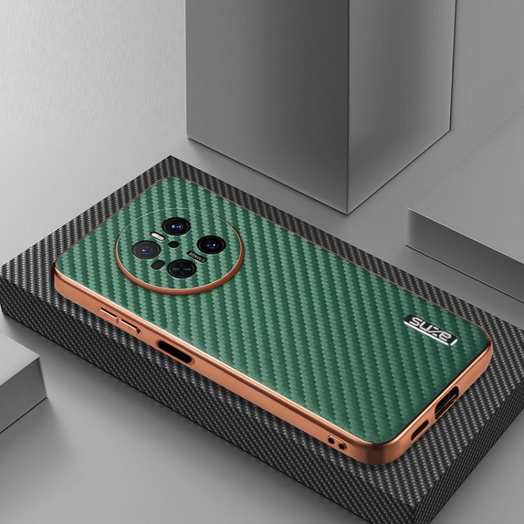 Funda para Teléfono Azns con Textura de Fibra de Carbono y Borde Galvanizado para Huawei Mate 70 (Verde)