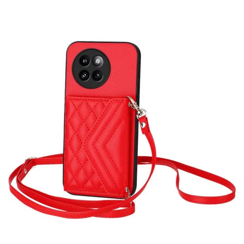 Funda para Teléfono con Textura Rómbica y TaRJetero Rfid para Xiaomi Civi 4 Pro con Cordón Largo (Rojo)