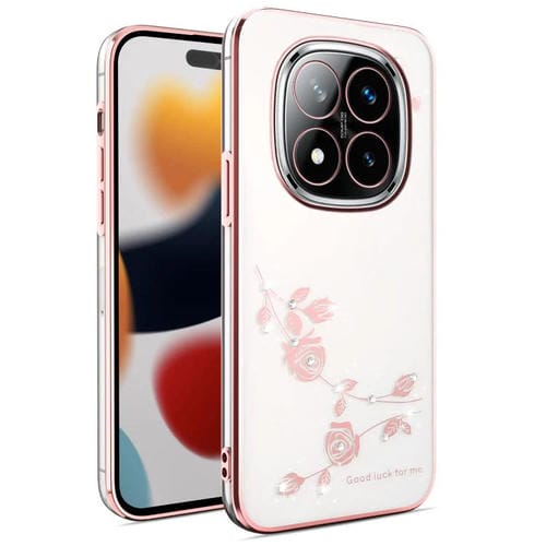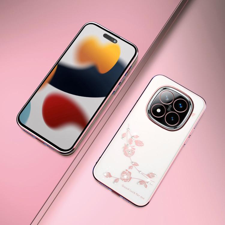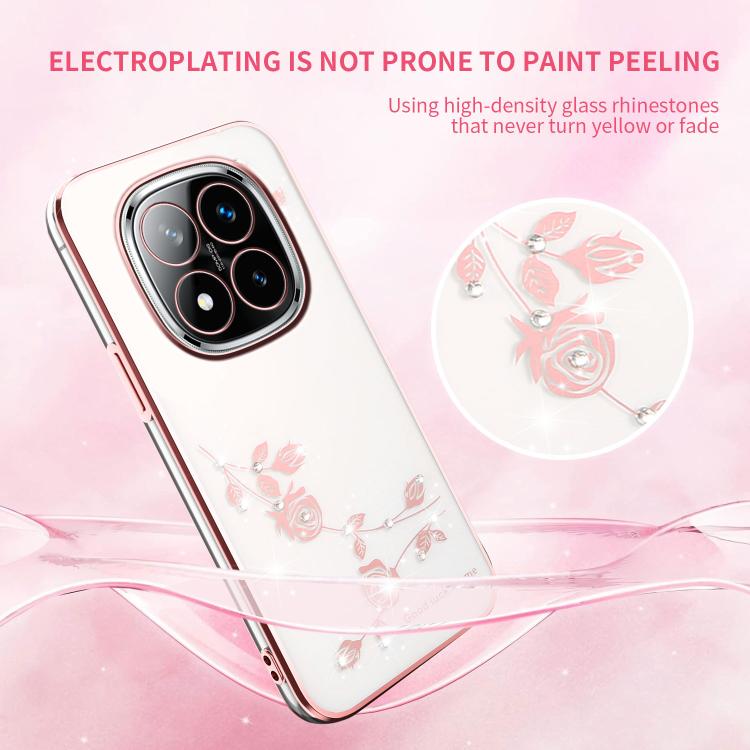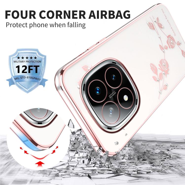 Funda para Teléfono con Todo Incluido y Diseño de Flores y Diamantes Brillantes para Xiaomi Redmi Note 14 Pro+ 5G (Rosa)