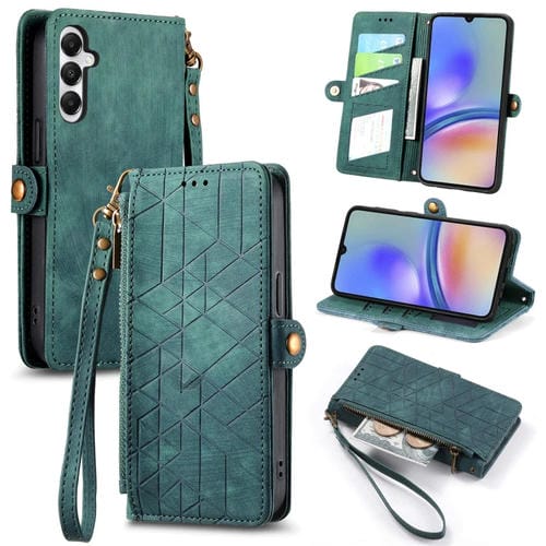 Funda para Teléfono Cuero Samsung Galaxy A05S Billetera con Hebilla y Cremallera (Verde)
