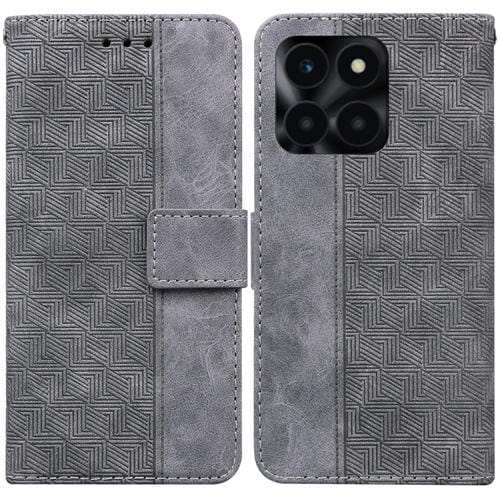 Funda para Teléfono Honor X6A de Cuero con Relieve Geométrico (Gris)