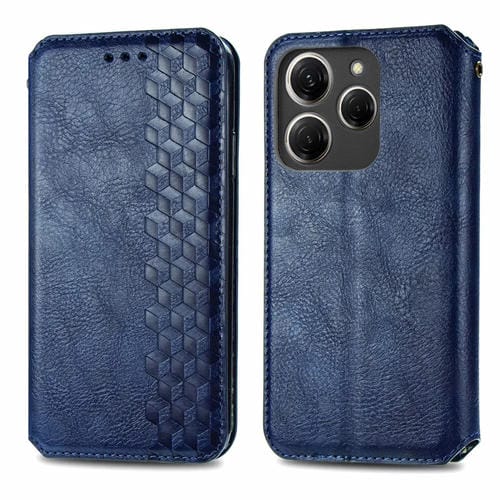 Funda para Teléfono Cuero Magnético Prensado Rejilla Cúbica Fortecno Spark 20 Pro (Azul)