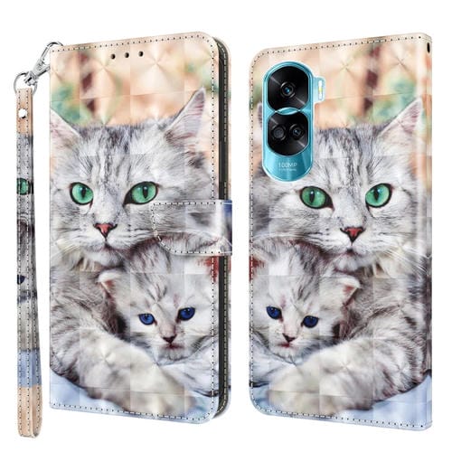 Funda para Teléfono Honor 90 Lite Cuero Pintado 3D Dos Gatos Amorosos