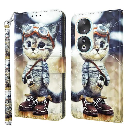 Funda para Teléfono Honor 90 Cuero Pintado en 3D Gato Travieso