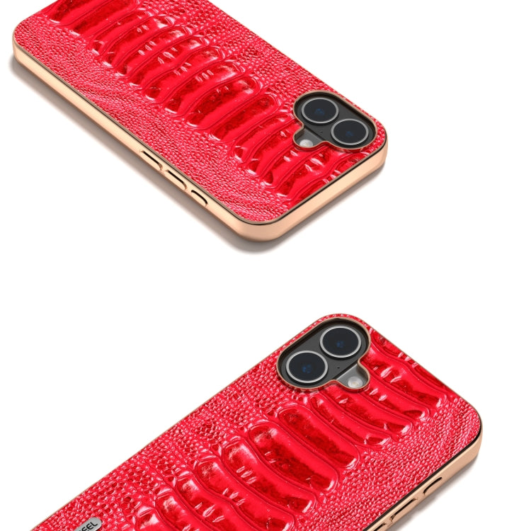 Funda para teléfono Weilai Abeel iPhone 16 Plus Cuero Genuino Marco Galvanizado (Rojo)