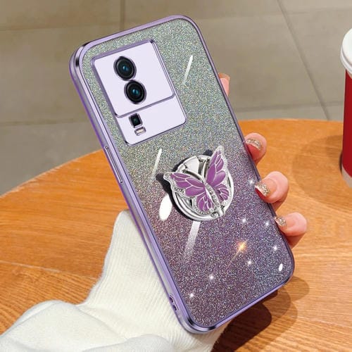 Funda para Teléfono de TPU con Soporte y Diseño de Mariposa con Purpurina Degradada para Vivo Iqoo Neo7 (Morado)
