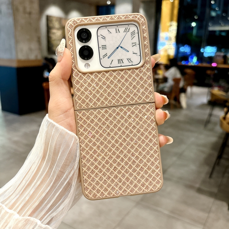 Funda para Teléfono Huawei Nova Flip con Diseño de Rombos y Diamantes Brillantes (Dorada)