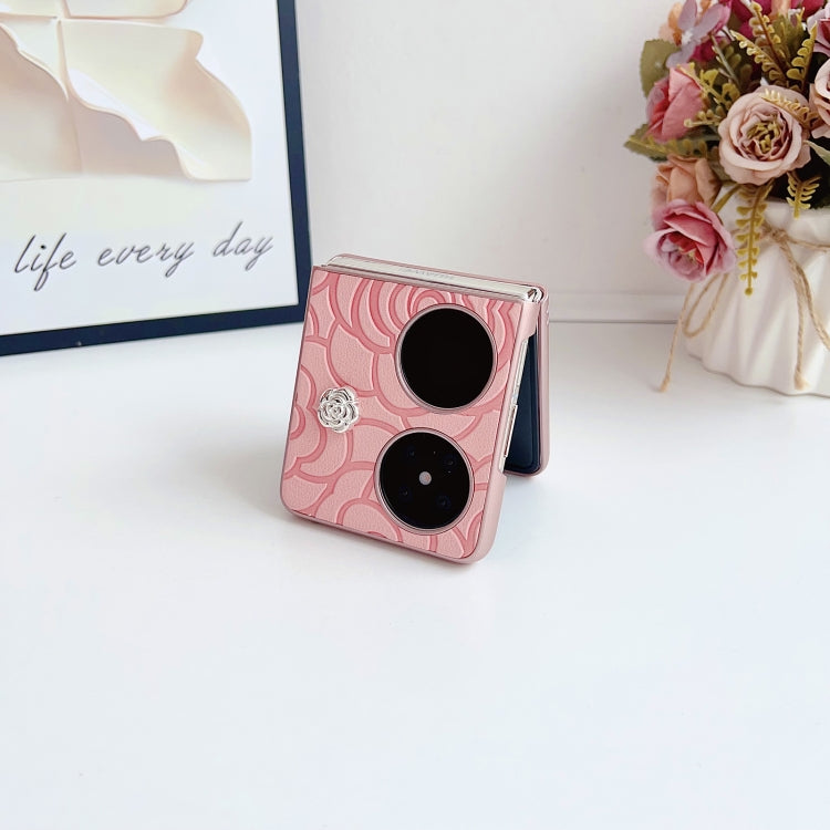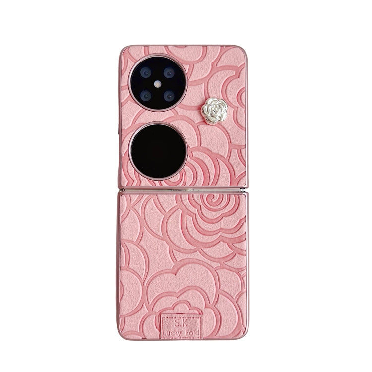 Funda para Teléfono Huawei Pocket 2 Diseño de Cuadros 3D Camelia (Rosa)