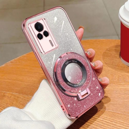Funda para Teléfono Redmi K60E con Soporte Redondo de TPU con Purpurina Degradada (Rosa)